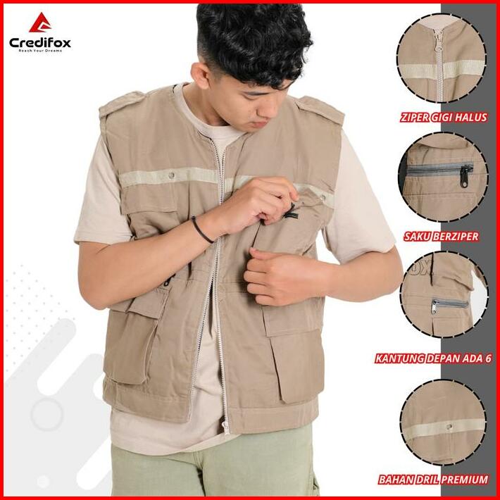 Rompi Vest Pria Dan Wanita Rompi Cargo Polos Pria Rompi Outdoor Santai Bahan Drill Rompi Tactical Style Casual