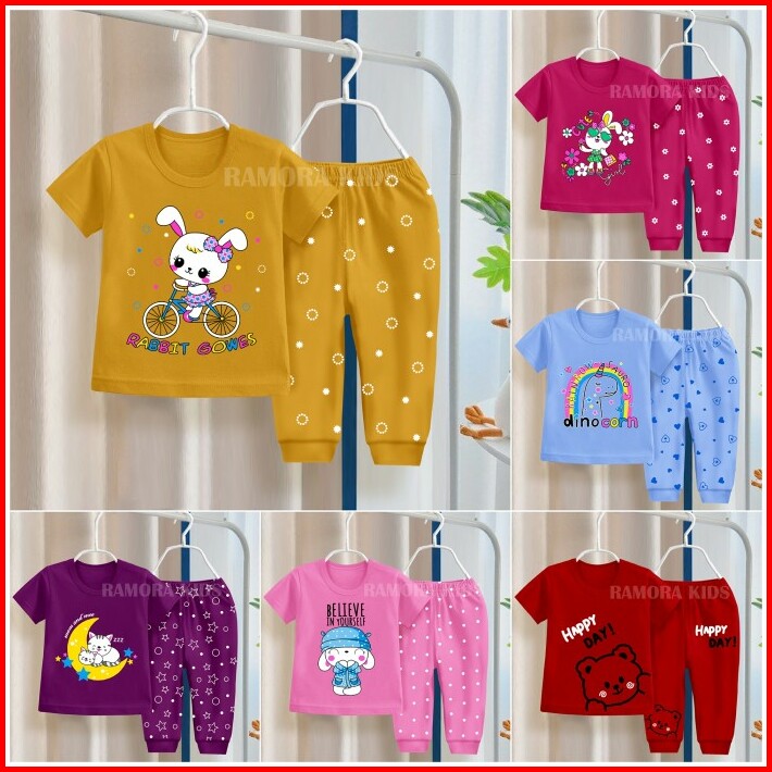 Ramora Setelan Baju Anak Perempuan Set Anak Cewek Celana Panjang Kaki Manset 1-6 Tahun