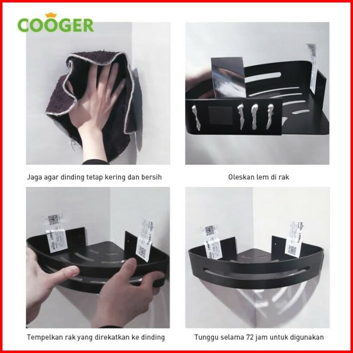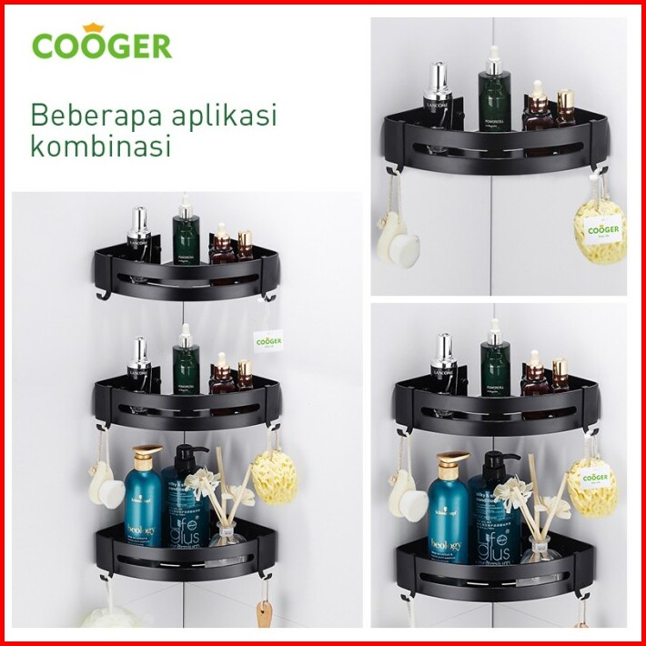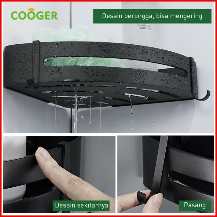 Cooger Rak Kamar Mandi Sudut Alumunium 1 Susun Tempel Dinding
