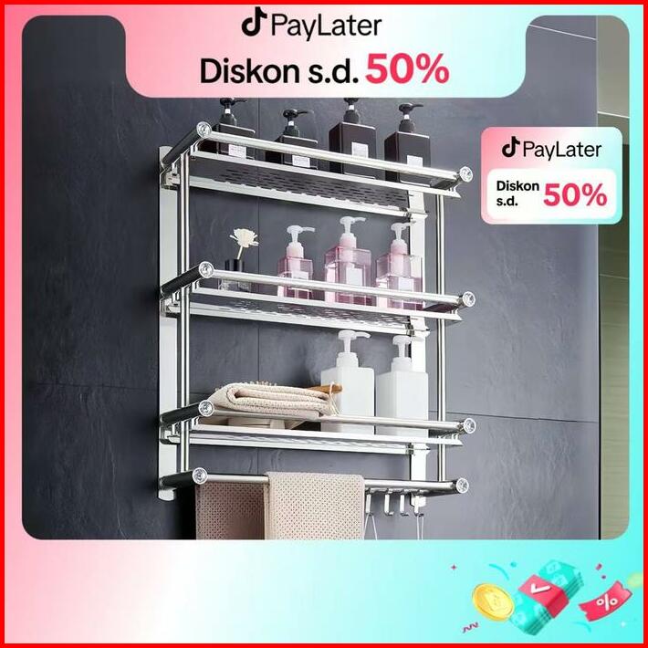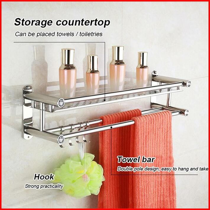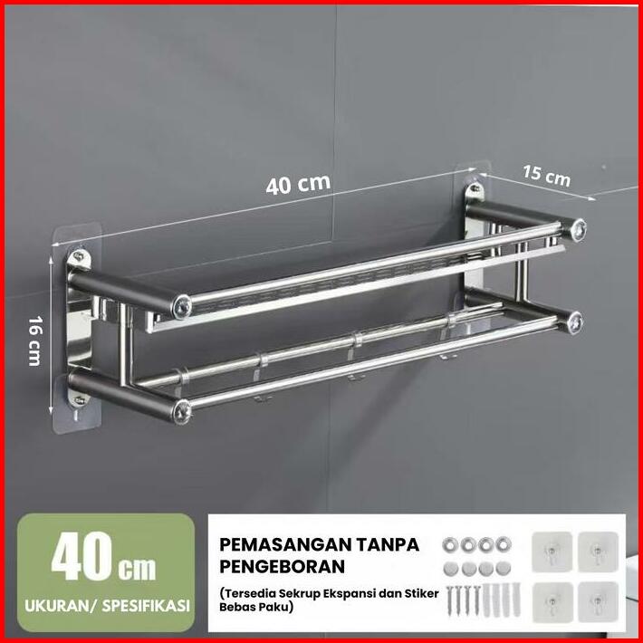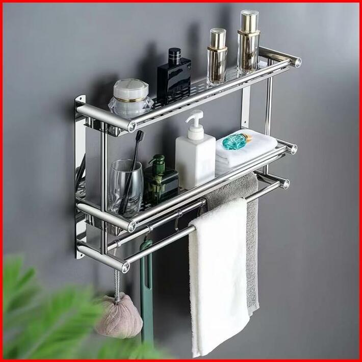 Rak Kamar Mandi Gantung Tempat Handuk Sabun Stainless Steel 1 2 3susun Panjang 40cm Rak Handuk Kamar Mandi