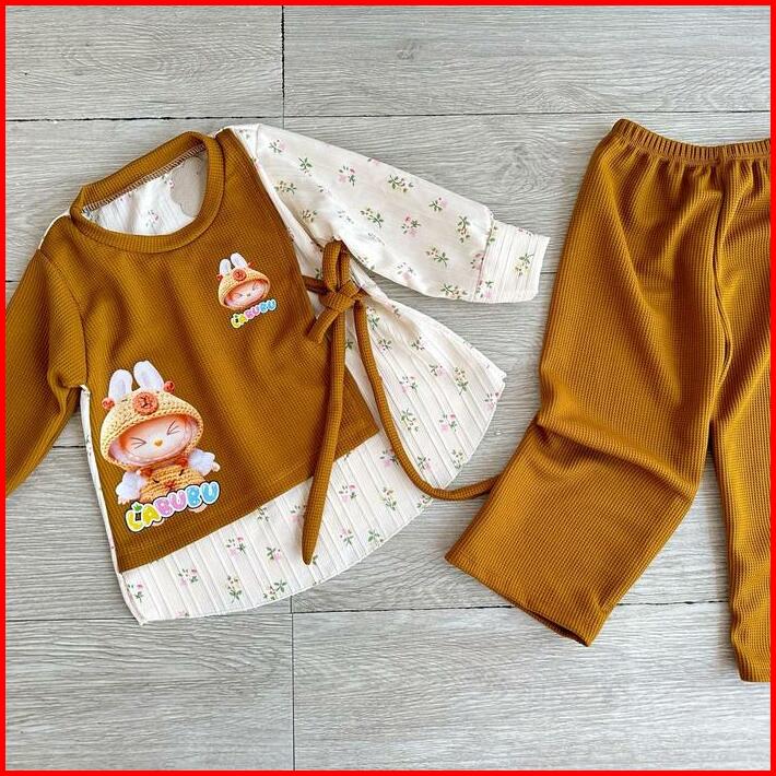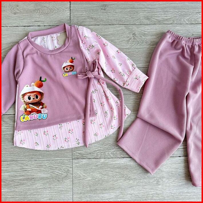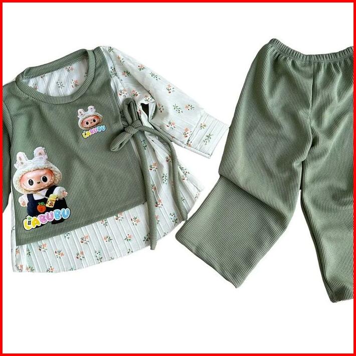 Labubu Setelan Anak Perempuan Semi Rompi Motif Bunga Knit Combinasi Cringkle Labubu
