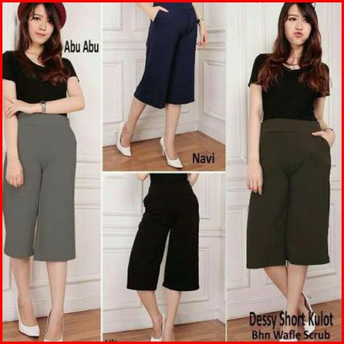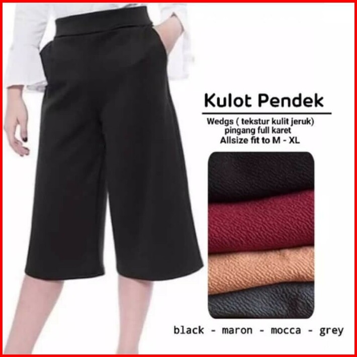 Celana Kulot Pendek 7 8 Wanita Bahan Wafel Crepe Standar 40-60kg