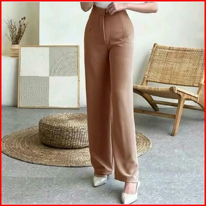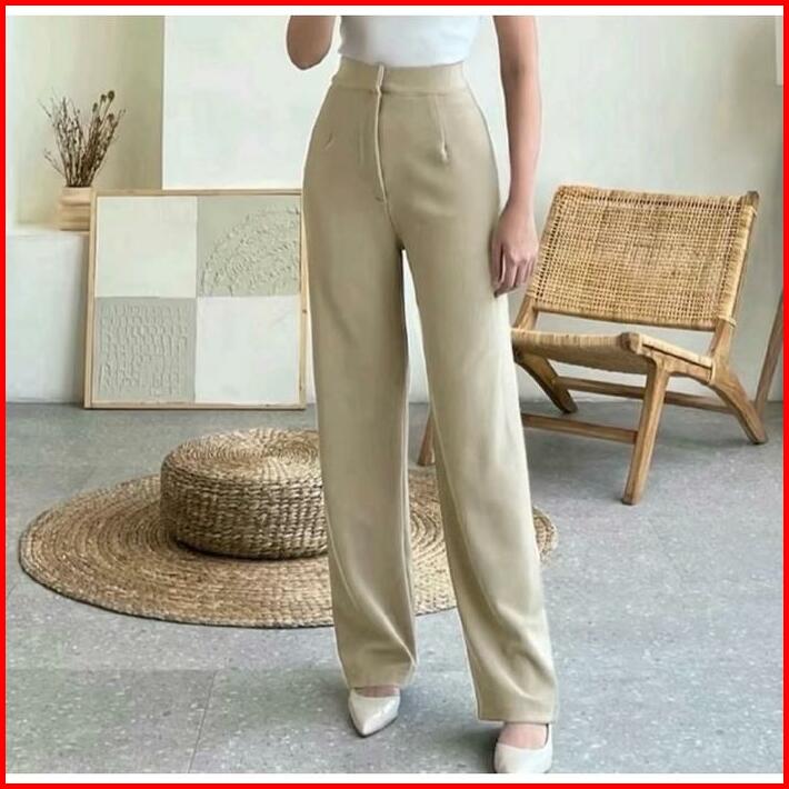 Sivafashion-cozie Knit Pants Celana Highwaist Panjang Wanita Kulot Rib Premium Celana Panjang Korean Style Anti Kusut Ku