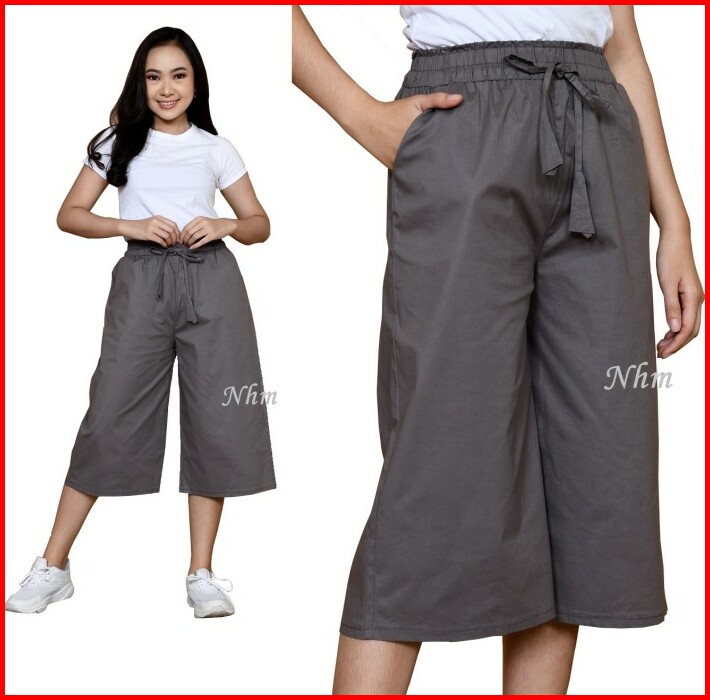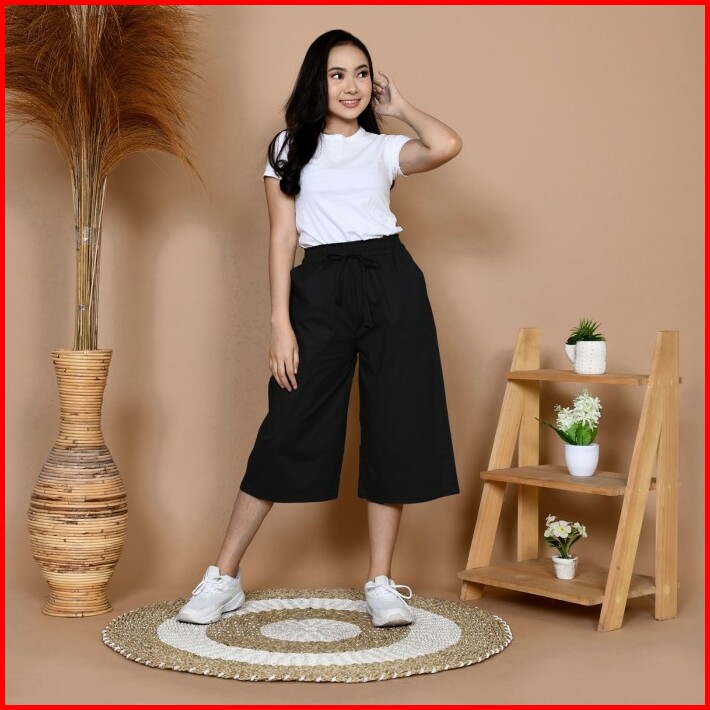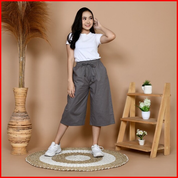 Celana Kulot Pendek Wanita Polos Celana Pendek 7 8 Katun Stretch