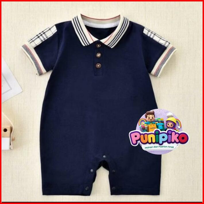 Baju Bayi Laki-laki Usia 0-12 Bulan Model Romper Kerah Bahan Katun Lembut Jumper Anak Cowok Kancing