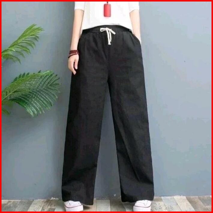 Celana Kulot Wanita Terkini Bahan Katun Linen Rami Premium Long Adara Celana Polos Grey Army Cream Navy Panjang Hitam Ca
