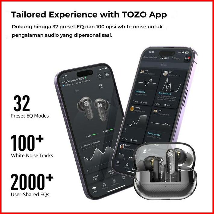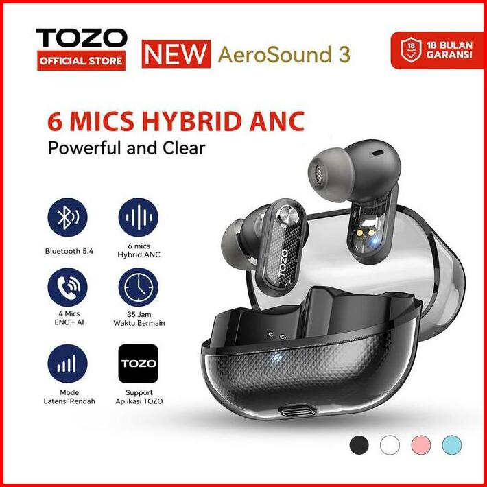 New Launch Tozo Aerosound3 Smart 6 Mics Hybrid Anc Ai 4 Mics Enc Clear Calls Earphone Bluetooth Tws Bluetooth 5.4 Headse