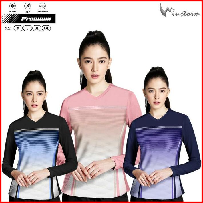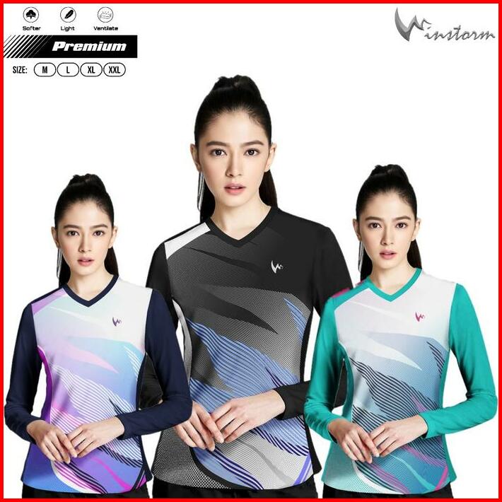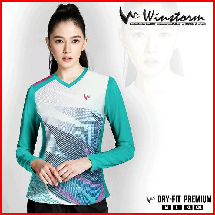Winstorm Lengan Panjang Baju Olahraga Cewe Premium Dewasa Jersey Badminton Wanita Koas Voli Print Sport