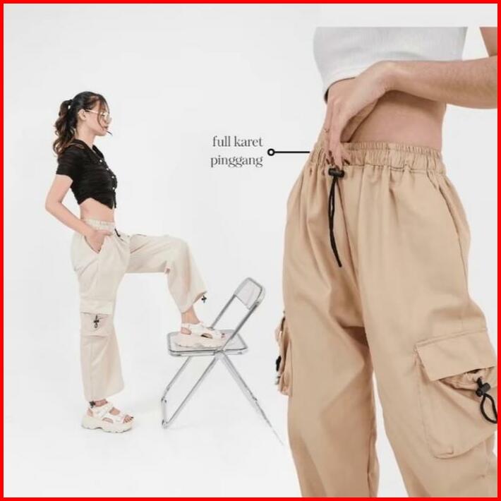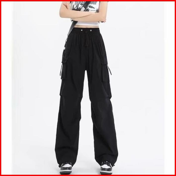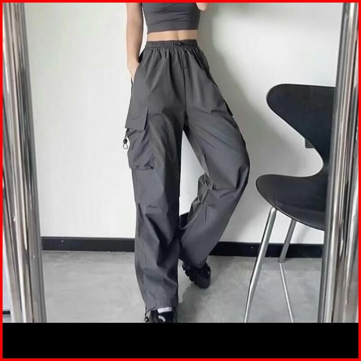 Celana Cargo Pants Wanita Haighwaist Korean Stylee Celana Cargo Serut Kaki Panjang Celana Panjang Standar Kantor Navy Fo