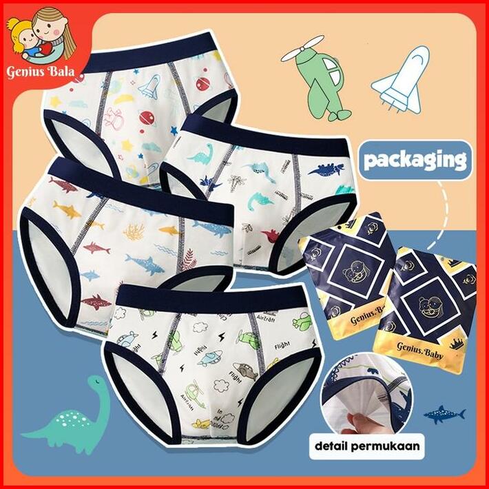 Genius Bala 1-12 Tahun Katun Murni Celana Dalam Segitiga Anak Laki-laki Versi Fashion Cd Anak Pakaian