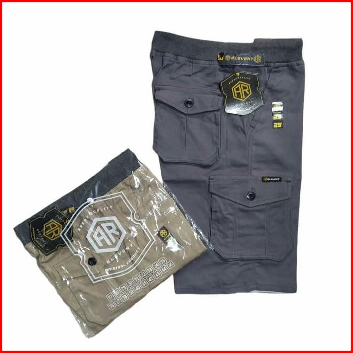 Celana Cargo Pendek Pria Pinggang Karet Bahan Katun Twill Melar Ukuran 27 Sampai Jumbo 44