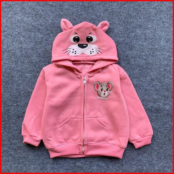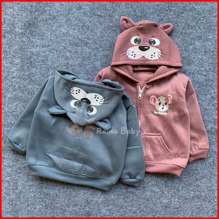 Jaket Bayi Anak Hoodie Saku Bahan Fleece Lembut Jaket Bayi The Mouse Usia 0-1 Tahun Cewek Cowok Mantel