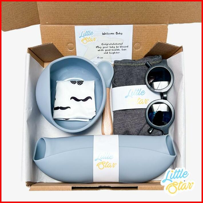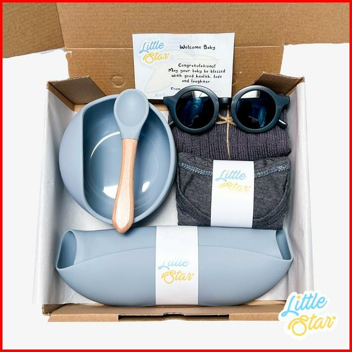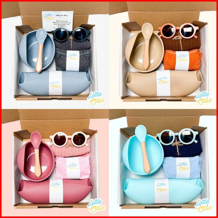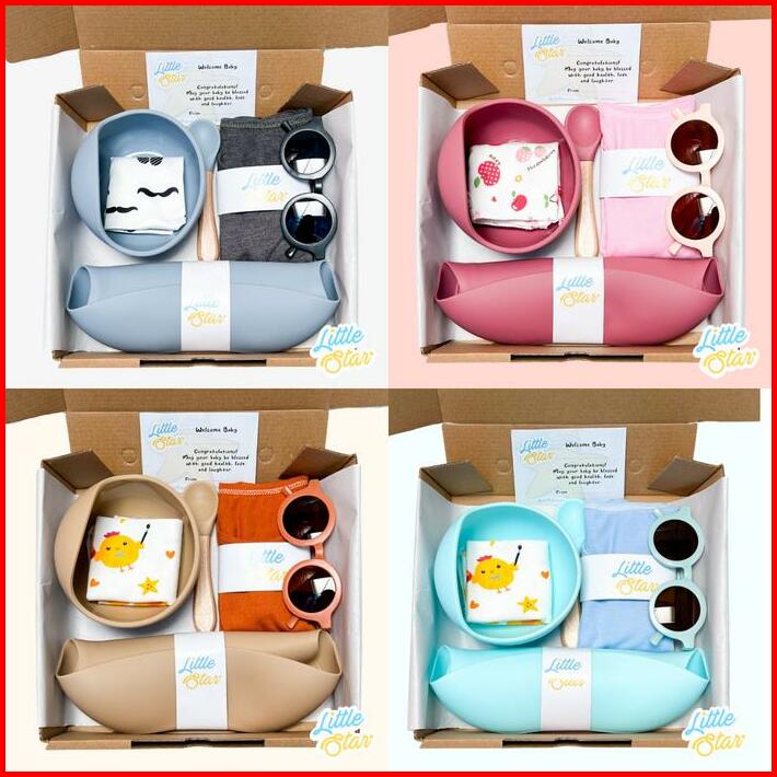 Hampers Newborn Baby Feeding Set Silicone Alat Makan Mpasi Bayi Gift Box Parcel Kado Lahiran Premium Unisex Piring