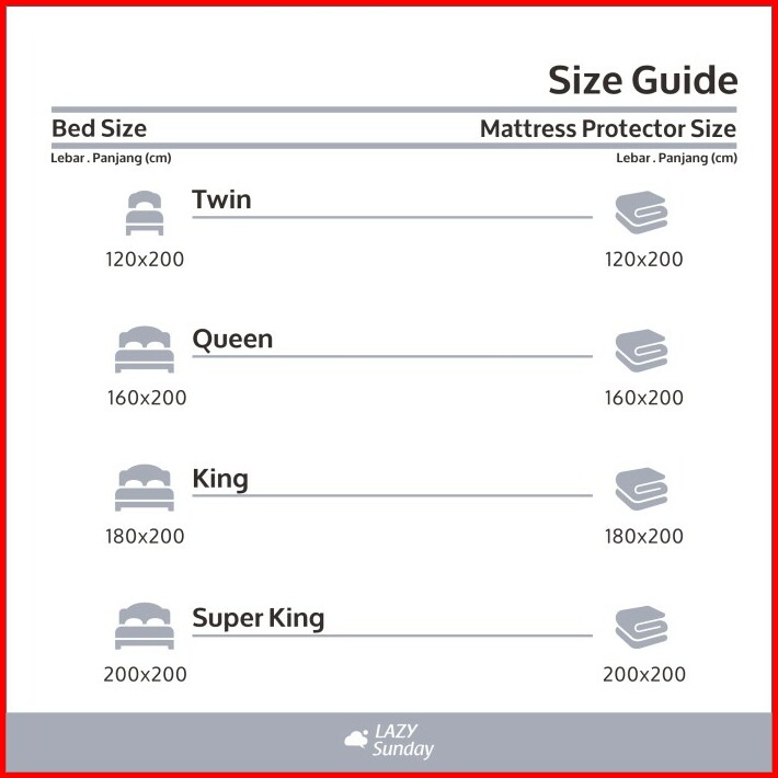 QUEEN 160X200, KING 180X200, TWIN 120X200, S-KING 200X200, SINGLE 100X200