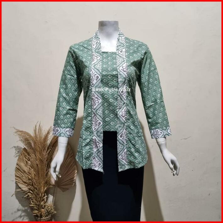 Batik Kebaya Kutubaru Blouse Motif Atasan Seragam Wanita Baju Katun Panjang