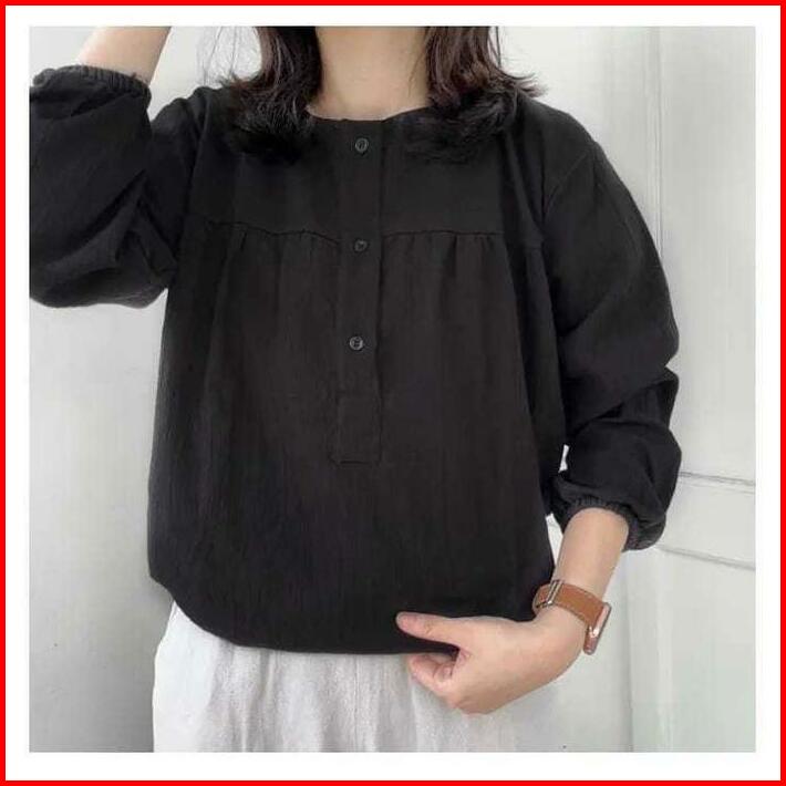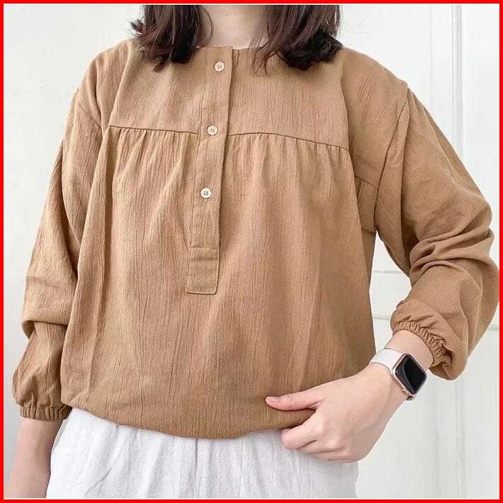 Blouse Atasan Wanita Casual Jumbo Oversize Model Baju Cewek Dewasa Kekinian Tunik 2025 Model Baru Basic Polo Linen Katun