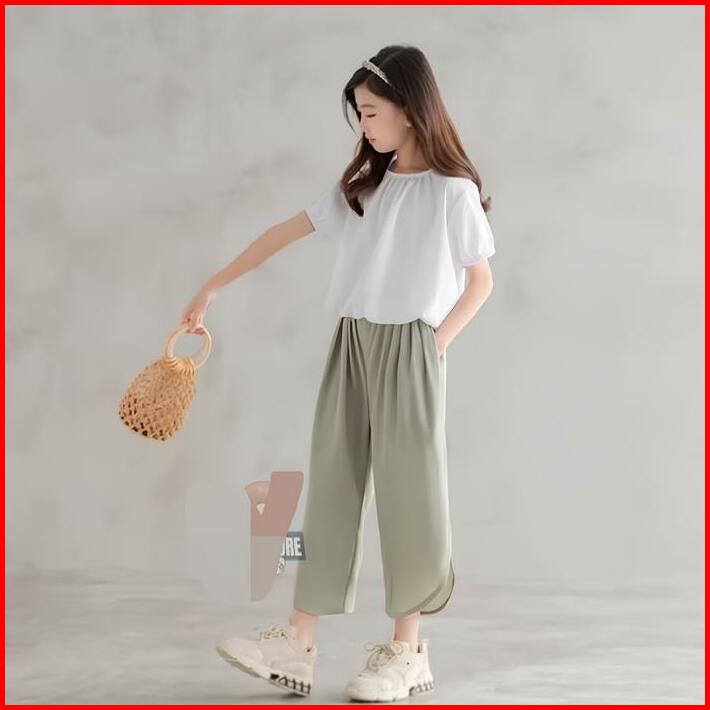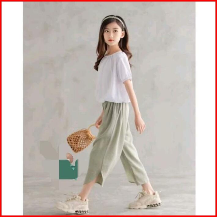 Setelan Kulot Anak Perempuan Bahan Crinkle Model Korean Kids Umur 3-14 Tahun Fashion
