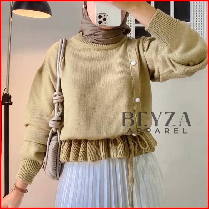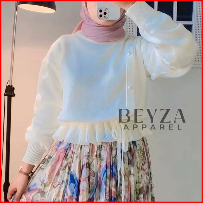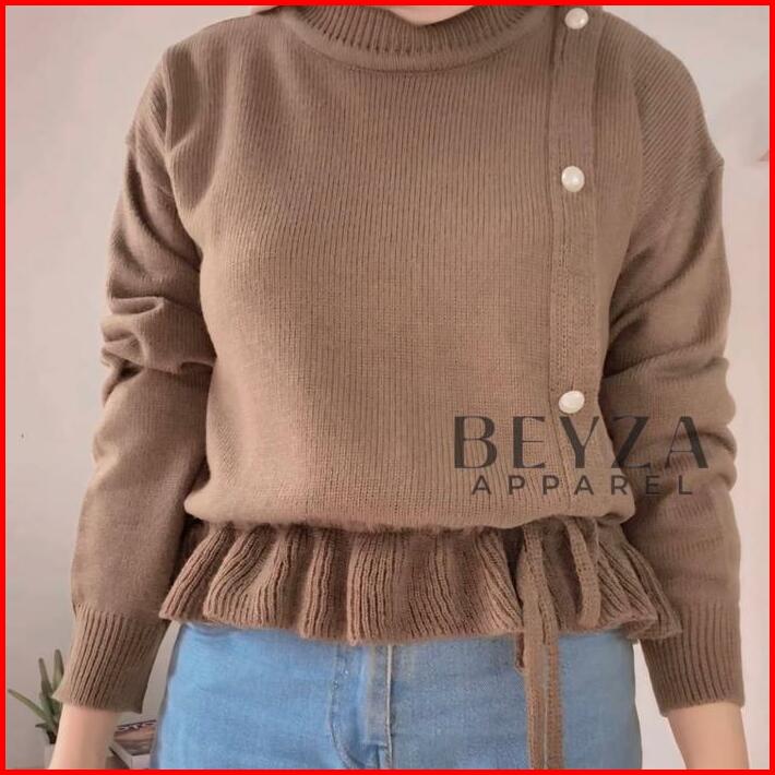 Beyza Apparel Jenny Blouse Atasan Wanita Motif Polos Kancing 3 Pinggir Rajut Premium Korean Style Baju Panjang Knitwear