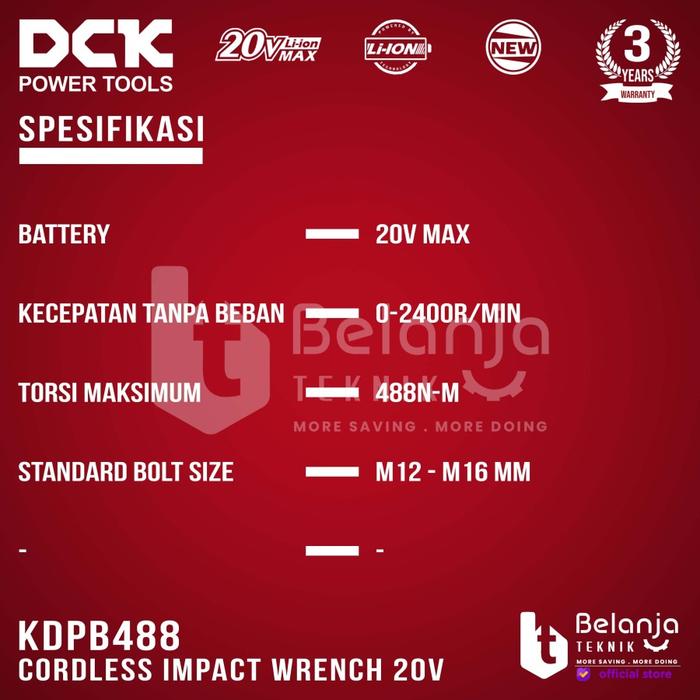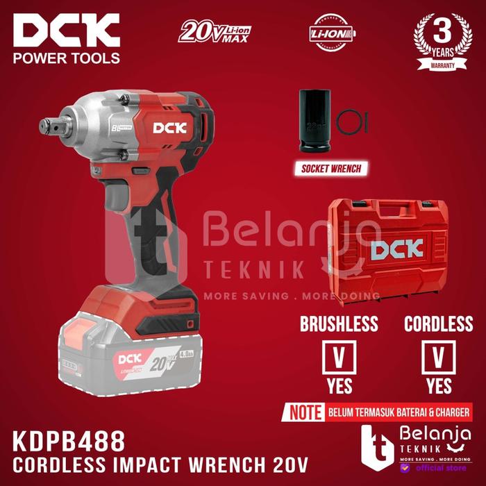 DCK Impact Wrench Baterai 1/2 In KDPB488 Pembuka Baut Unit Only 20V