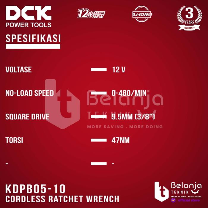 DCK Ratchet Cordless KDPB05-10EK Rachet Sock Wrench 12V Socket Sok 3/8 1 Baterai