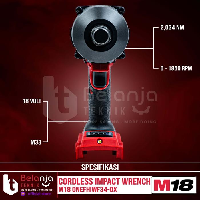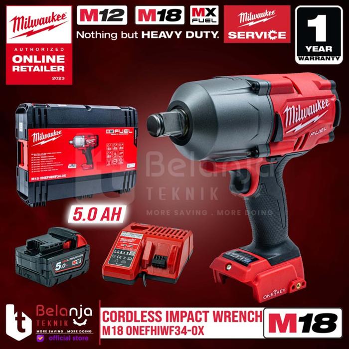 Milwaukee Impact Wrench Baterai 3/4 In M18 ONEFHIWF34-0X Set 18 V 5 AH