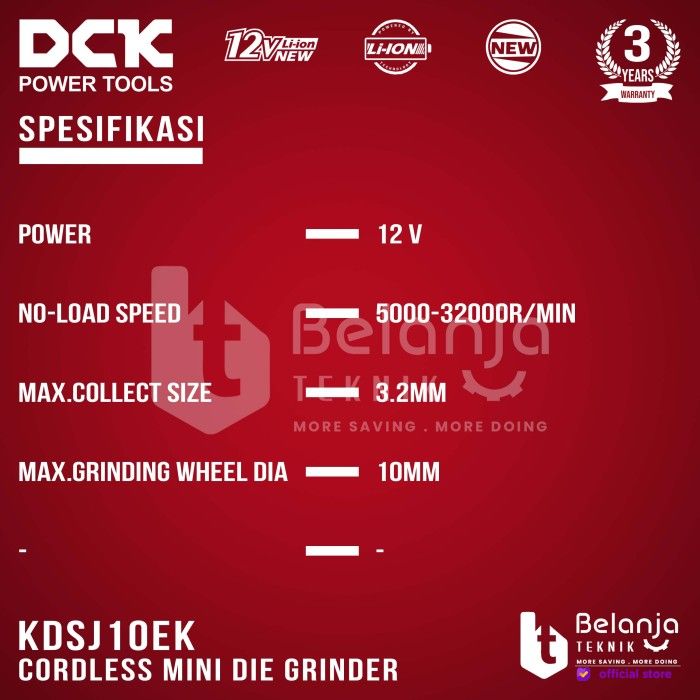 DCK Mesin Gerinda Botol Baterai KDSJ10EK Mini Die Grinder 3.2 MM 12V