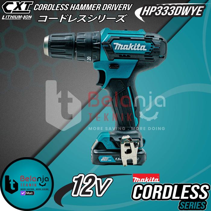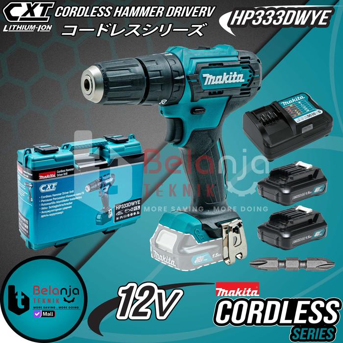 MAKITA Mesin Bor Baterai HP 333 DWYE Hammer Driver Drill Cordless 12 V