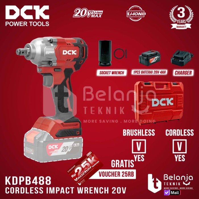 DCK Mesin Impact Baterai 1/2 In KDPB488 DM Impact Wrench Brushless 20V