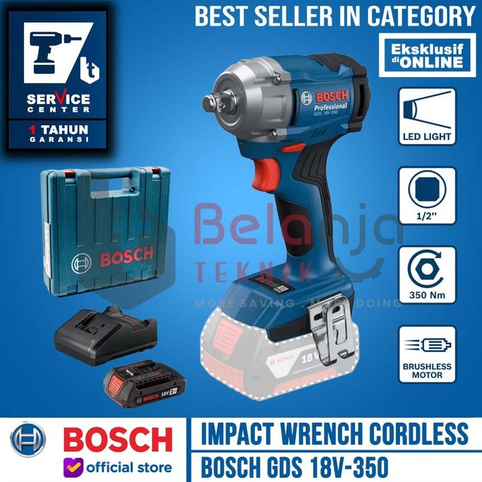 Bosch Mesin Pembuka Baut GDS 18V-350 Impact Wrench Cordless 18V 2 AH