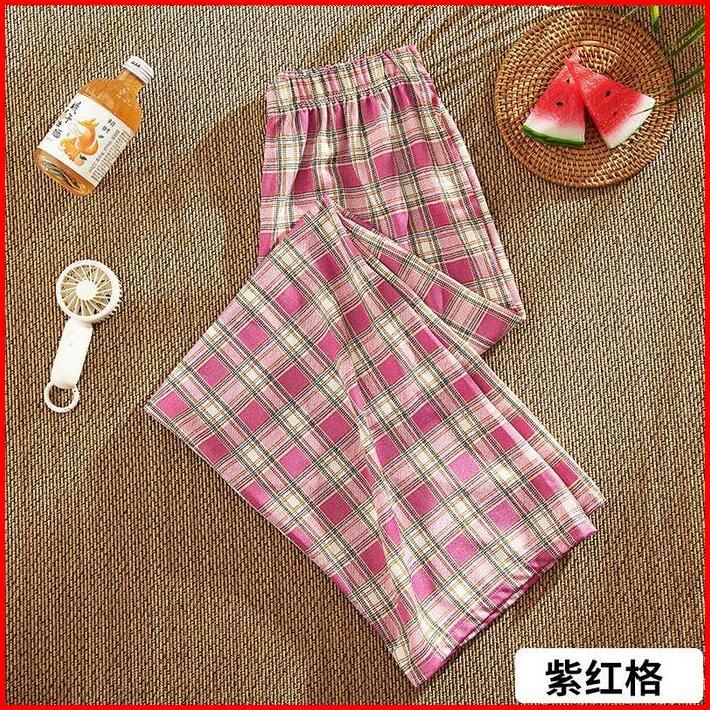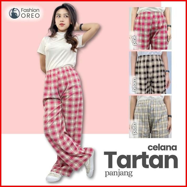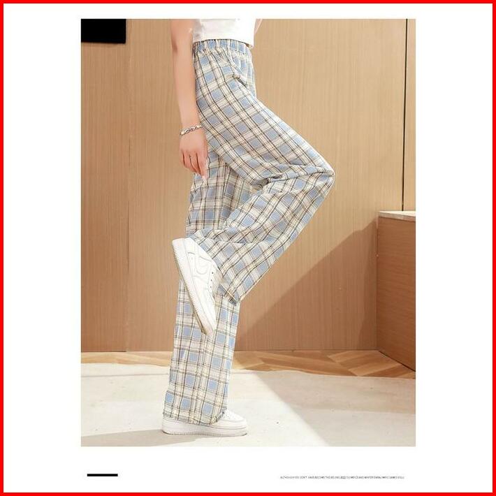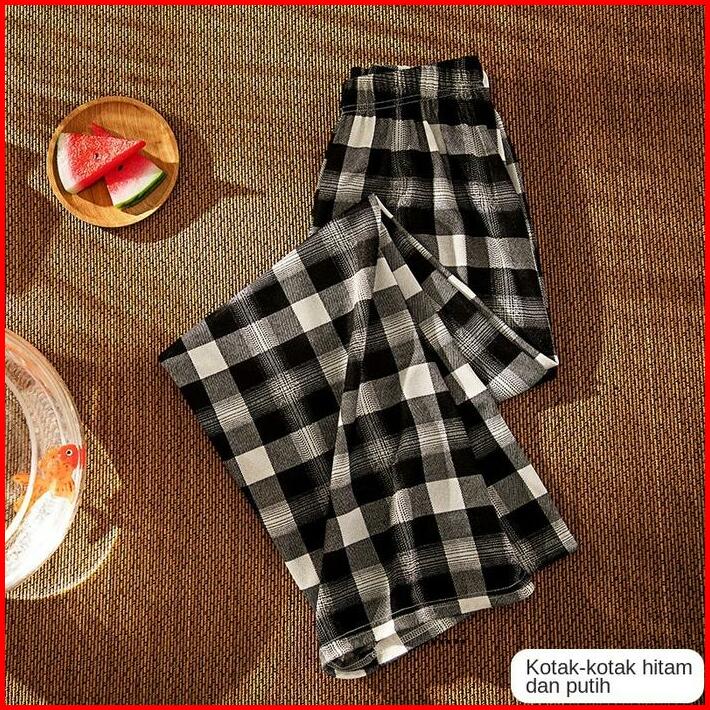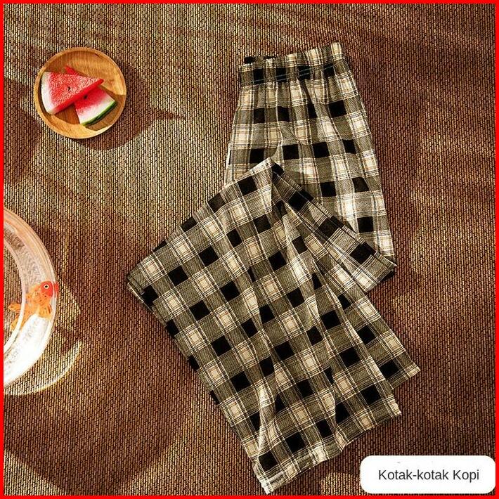 Celana Tartan Longpanst Fashion Berkualitas Korean Style Highwaist Kotak-kotak Katun Linen Kulot Panjang Wanita Variasi