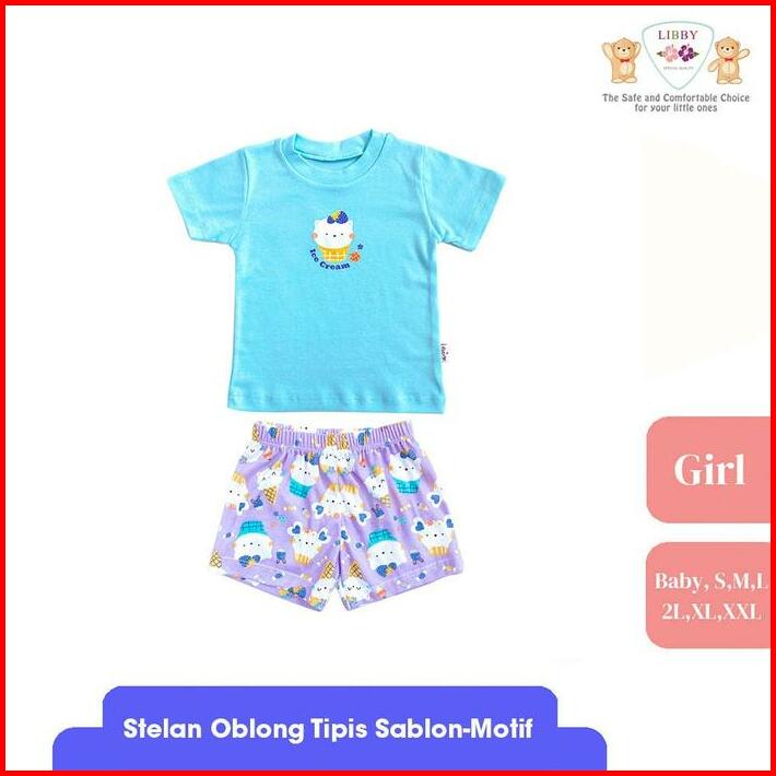 Libby Setelan Bayi Anak Celana Pendek Oblong Tipis Girl Anak Perempuan 0-5 Tahun 1 Stel