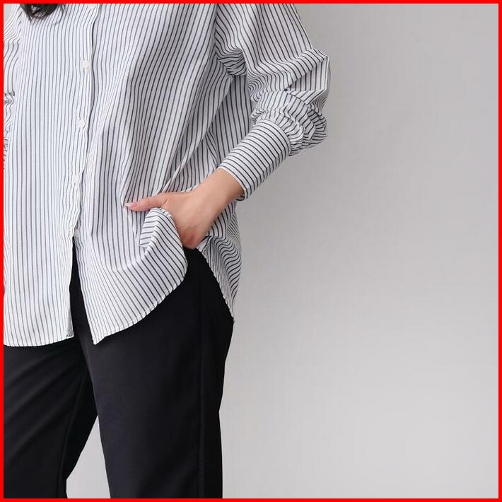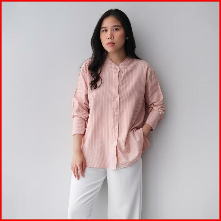 Talia Stripe Editions Shu Studio Kemeja Atasan Baju Basic Kerja Wanita Kerah Shanghai Lengan Panjang Cotton Blend Premiu
