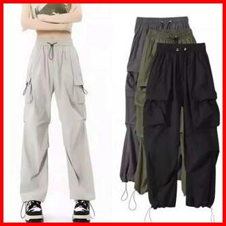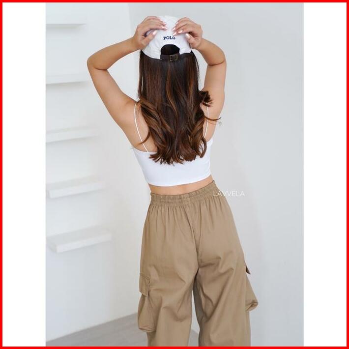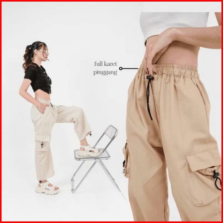 Kiya Celana Cargo Wanita Haighwaist Serut Korean Style