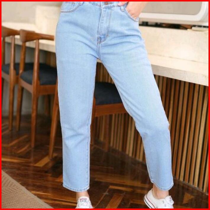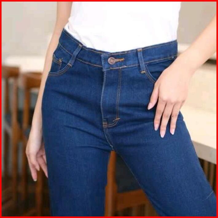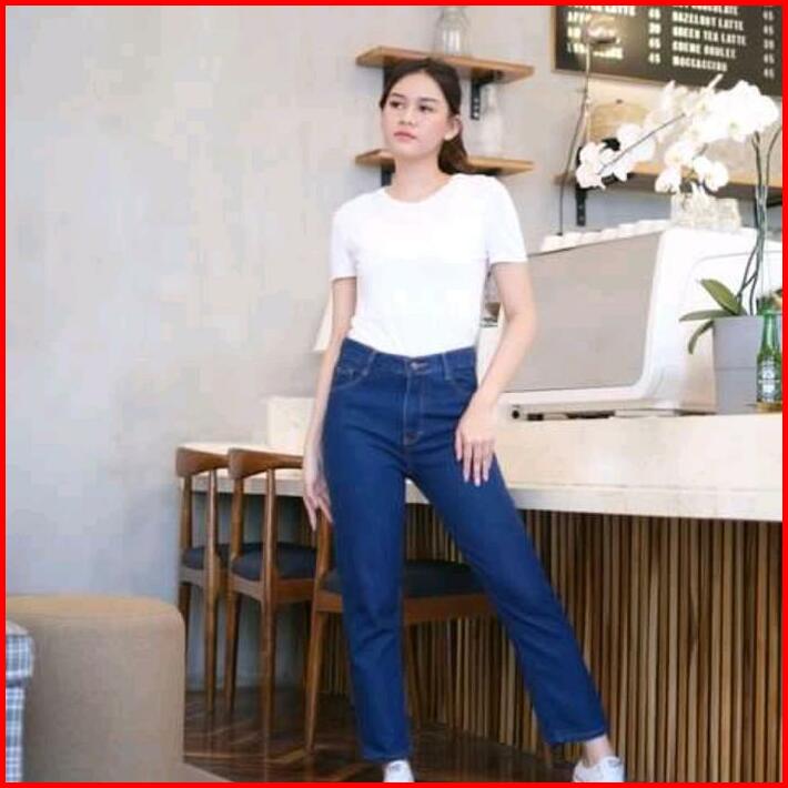 Murah Haighwaist Boyfriend Jeans Celana Panjang Wanita Polos Navy 27-34 Warna Dark Blue Nyaman Tebal Variasi Light