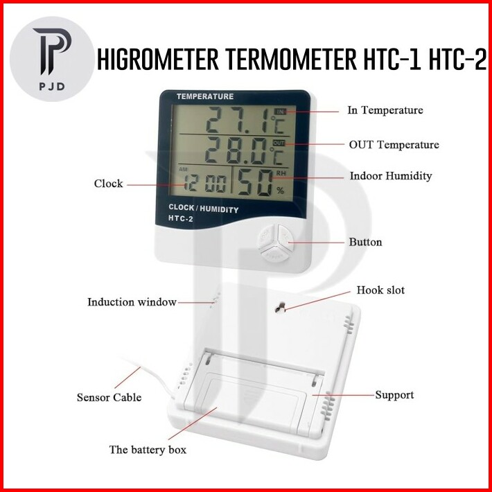 Higrometer Htc-1 Htc-2 Termometer Jam Digital Alat Ukur Suhu Ruangan