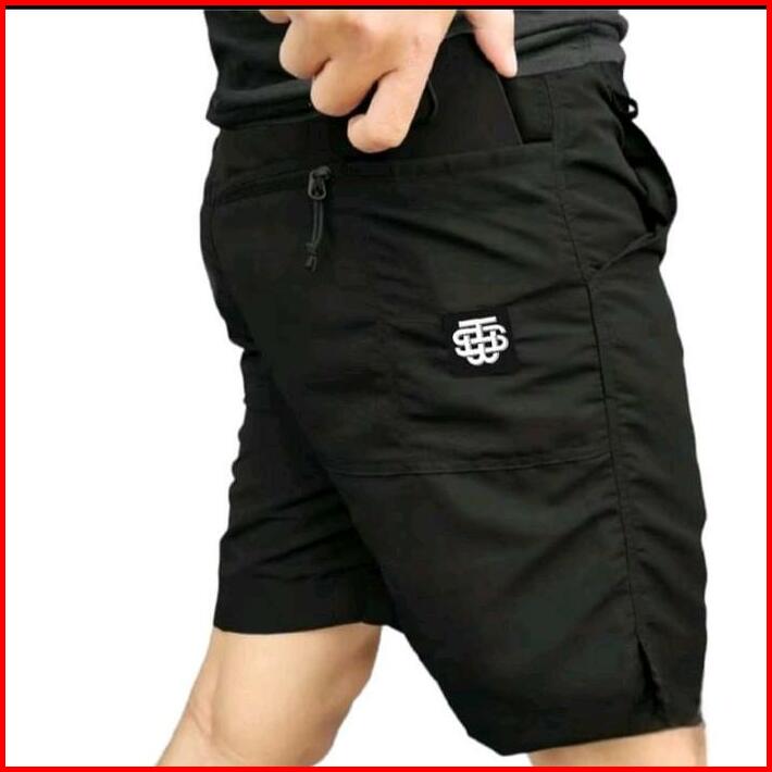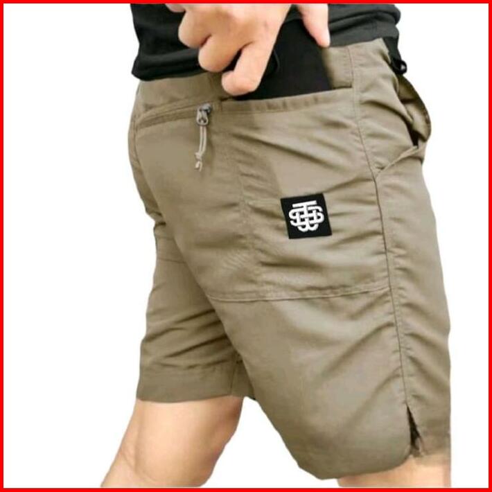 Celana Kolor Pria Distro Model Saku Resleting Bahan Katun Poplin Adem Dipakai Seharian Celana Pendek Pria Hitam Cream Ab