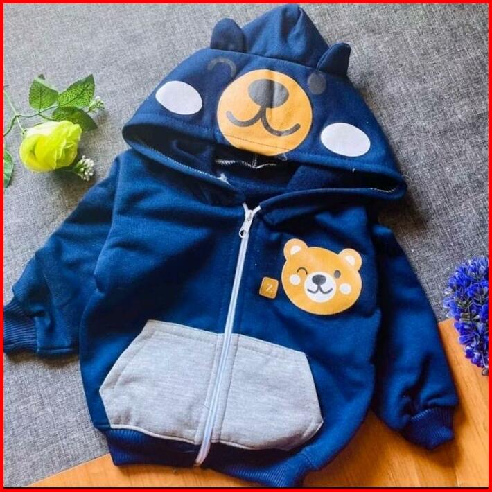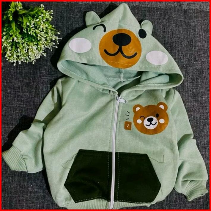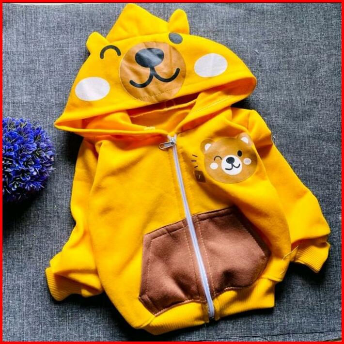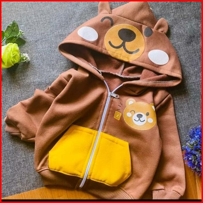 Jaket Bayi Laki Laki Perempuan Usia 3-12 Bulan Bahan Fleece Model Hoodie Dan Saku Motif Bearz