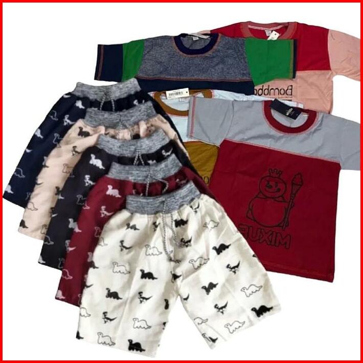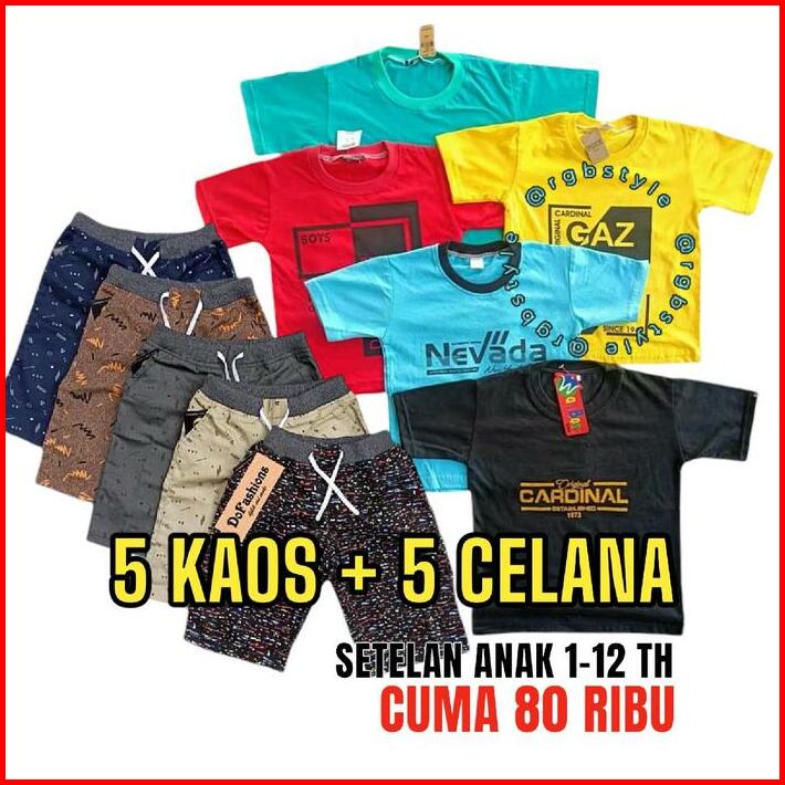 Promo 80 Ribu Dapat 5 Pasang Setelan Anak Kaos Combet Celana Grosir Baju Pakaian Cowok Laki-laki Usia 2-6-13 Tahun Keren