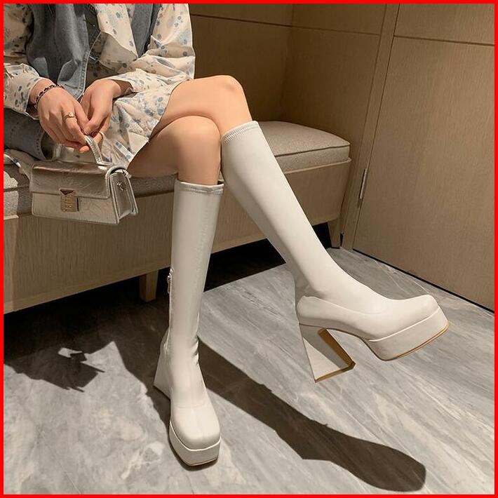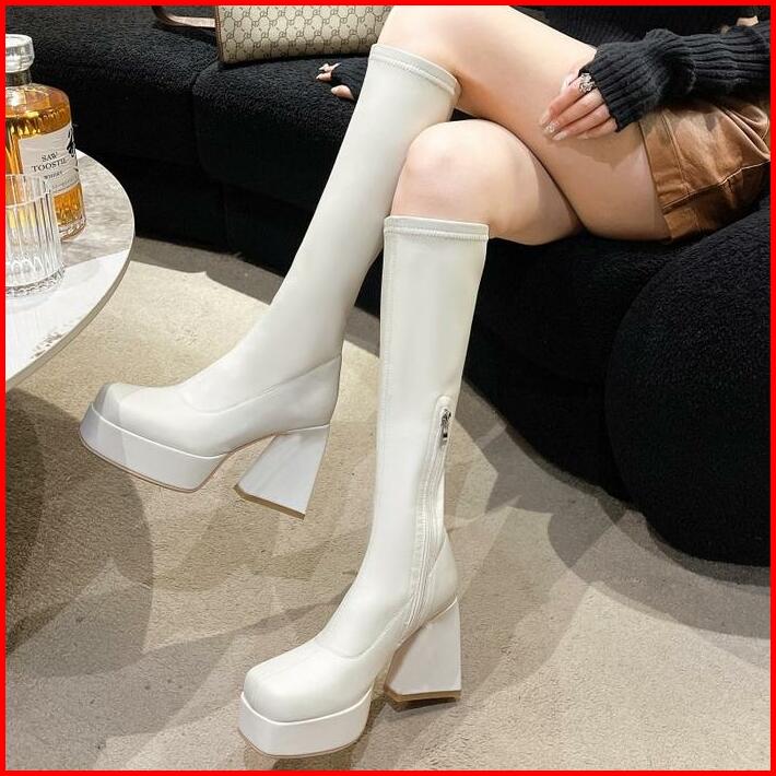 Pinkey P295 Sepatu Boots Panjang Wanita Boots Winter Overknee Leather Elastic Putih Shoes Hitam