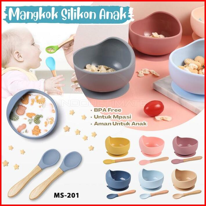 Set Mangkok Makan Sendok Makan Bayi Ms-201 Perlengkapan Makan Bayi Bpa Free Mangkok Mpasi Bayi Set Alat Makan Silicon Se
