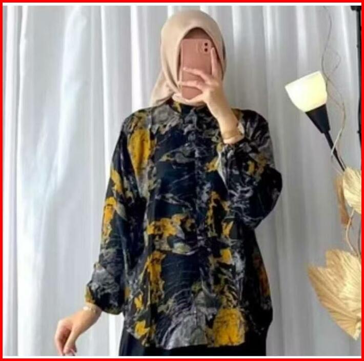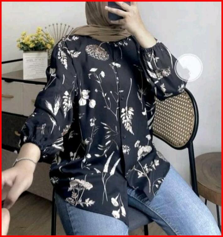 Atasan Wanita Kekinian Kameja Kancing Lengan Panjang Blouse