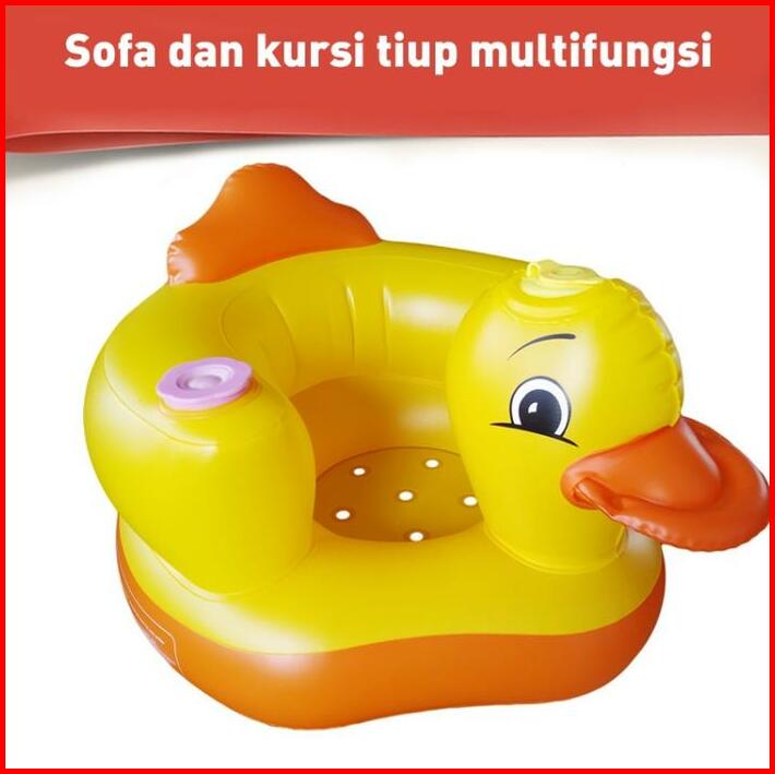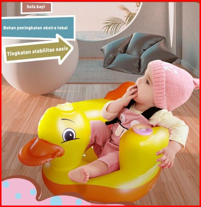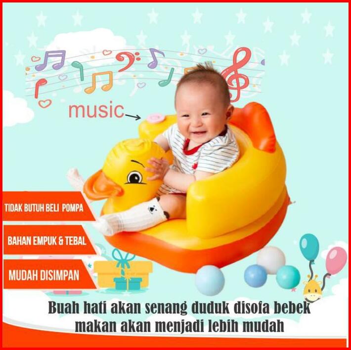 Sofa Kursi Makan Bayi Belajar Duduk Balon Baby Chair Model Tiup Bebek Dengan Music Musik Bebek Duduk Anak Balita Kuning