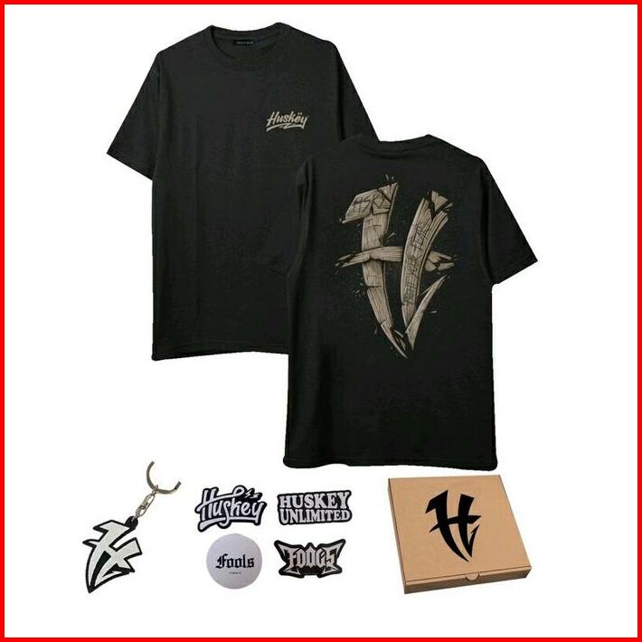 Huskey Logo Wood Blk Kaos Pria Distro Original T Shirt Pria Atasan Pria