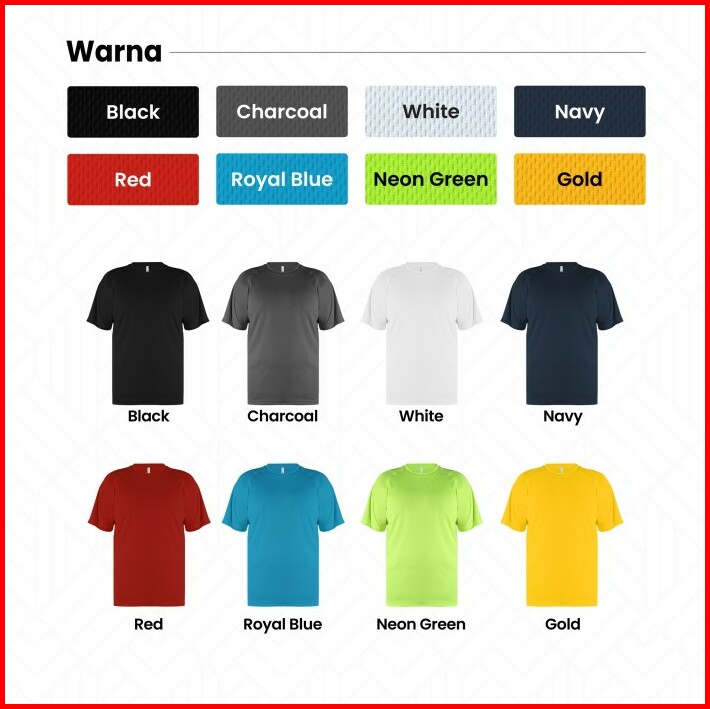 BLACK, CHARCOAL, GOLD, NAVY, NEON GREEN, RED, ROYAL BLUE, WHITE