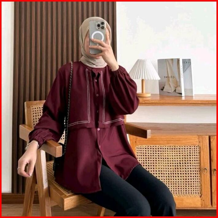 Triana Blouse Shakilla Layer New Baju Panjang Busui Wanita Variasi Kancing Atasan Casual Shakila Muslim Blus Kemeja