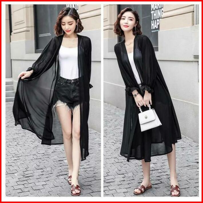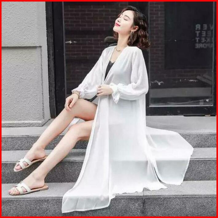 Basic Id Fashion Long Outer Transparan Outer Wanita Kekinian Outer Pantai