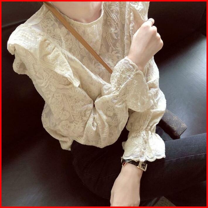 Raisa Blouse Renda Bunga Wanita Lengan Panjang Korea Style Atasan Baju