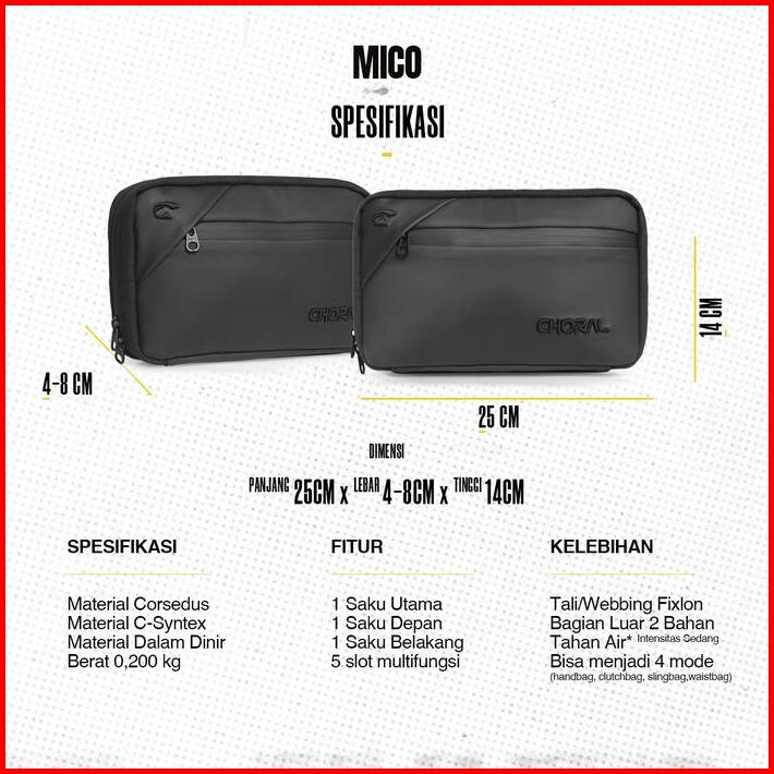 Choral Mico Handbag Tas Multifungsi 4 In 1 Clutchbag Handbag Waistbag Slingbag Tas Selempang Pria Tas Pria Tas Anti Air