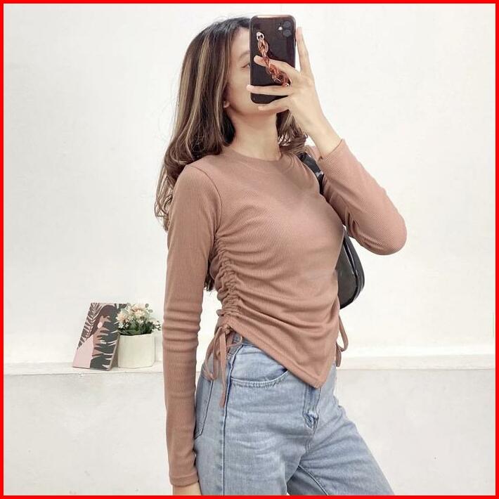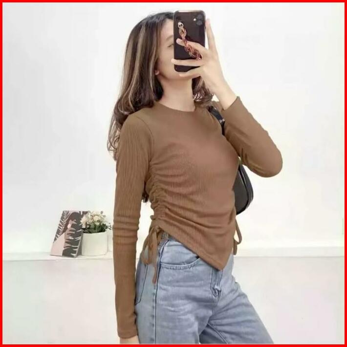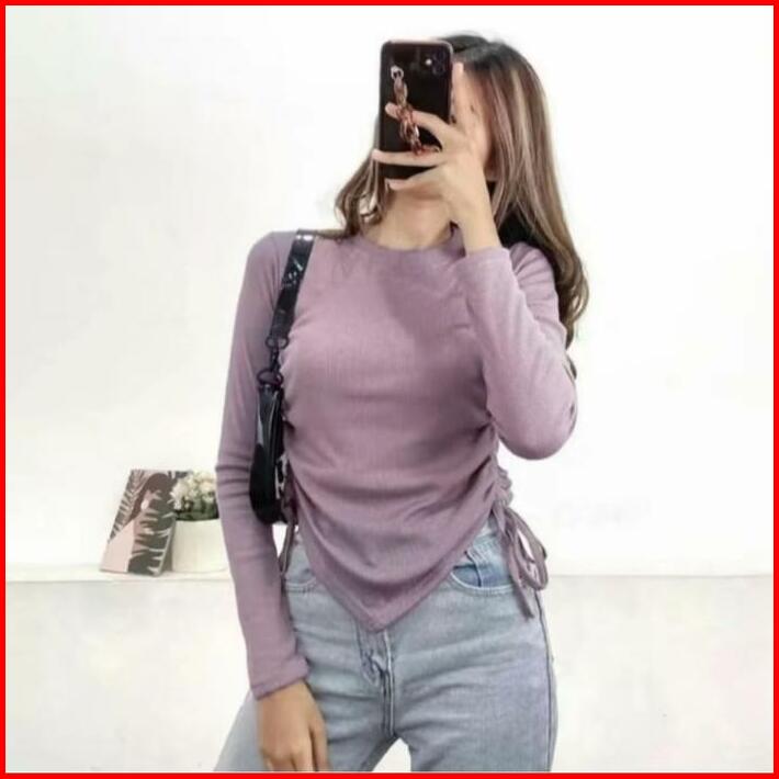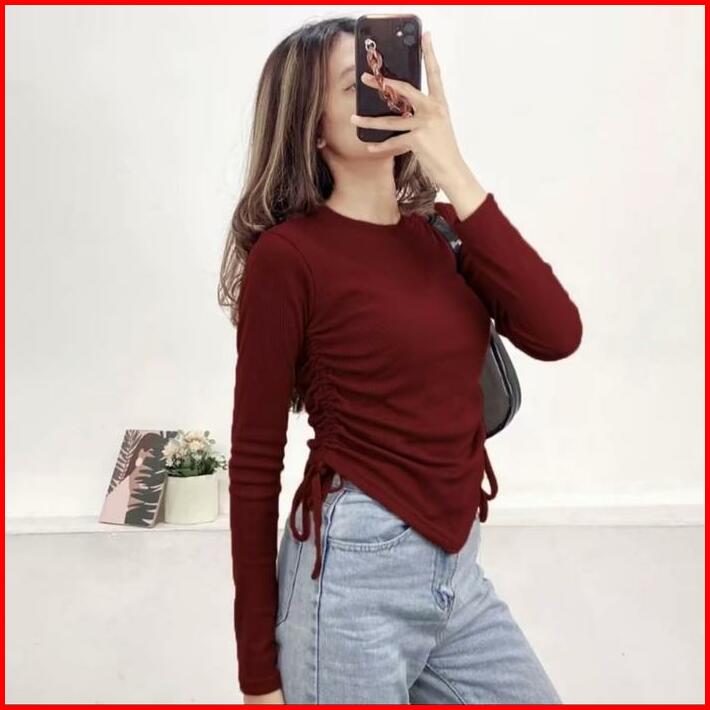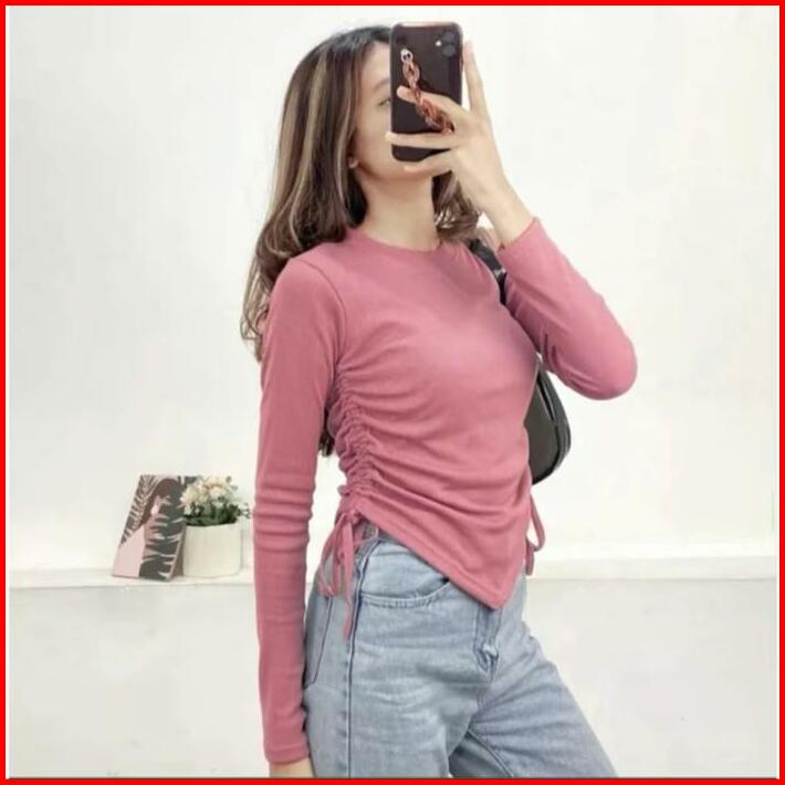 Valen Top Blouse Serut Samping Knit Lengan Panjang Kaos Atasan Wanita