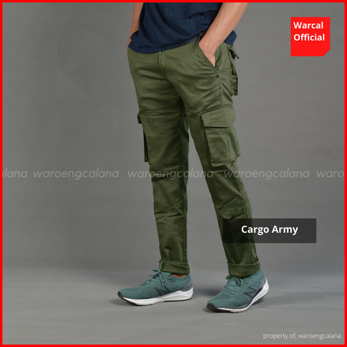 Celana Cargo Panjang Pria Slim Fit Strecth Army